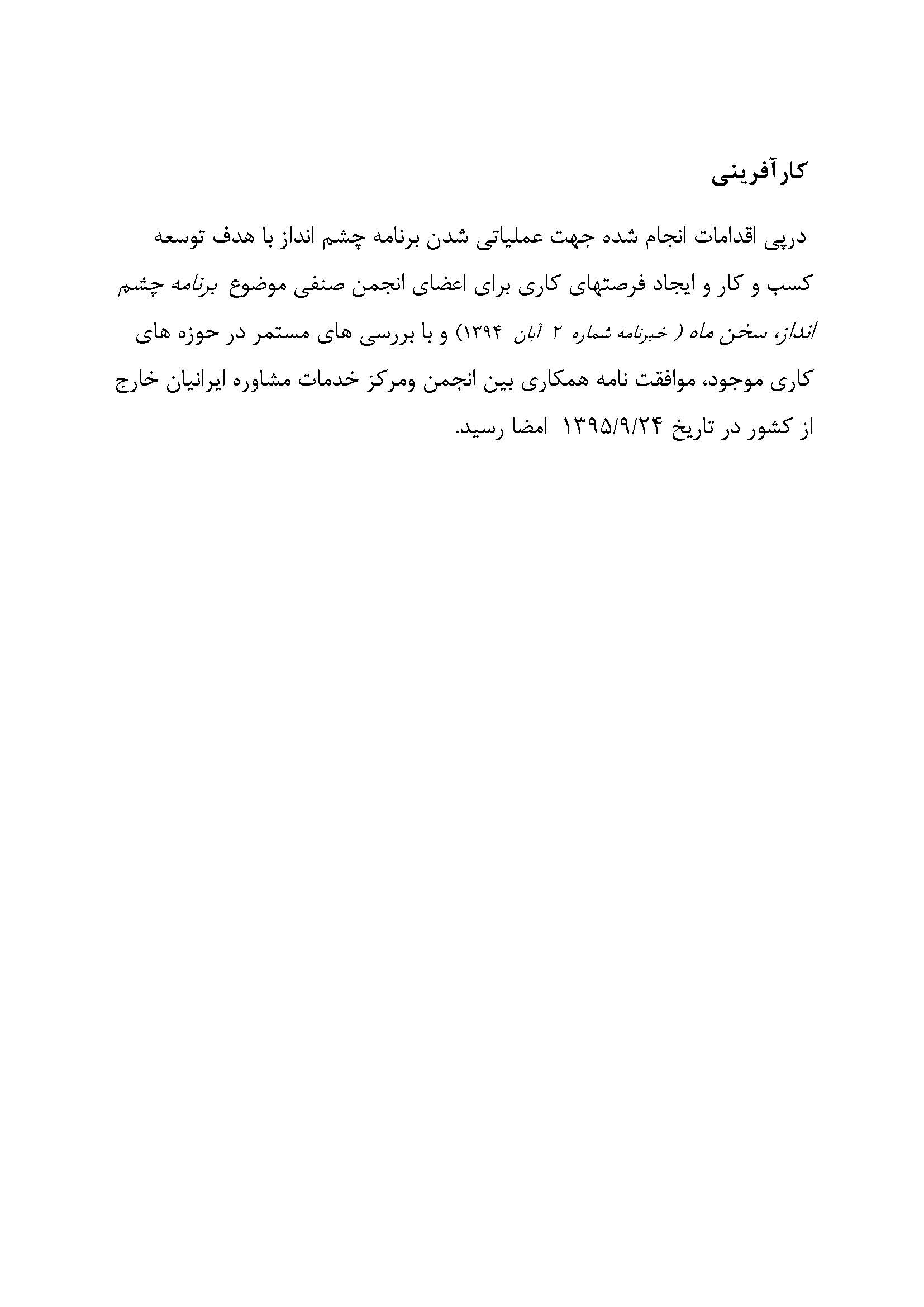 اقدامات انجام شده جهت عملیاتی شدن برنامه چشم اندازجهت توسعه کسب وکار