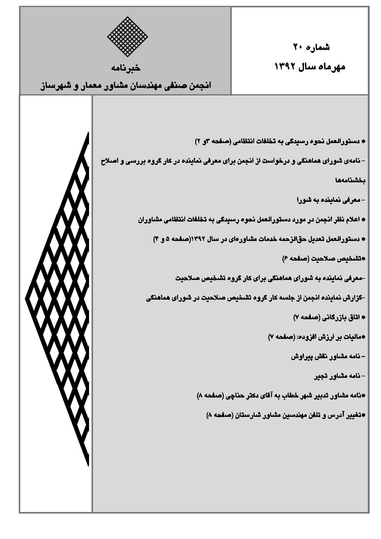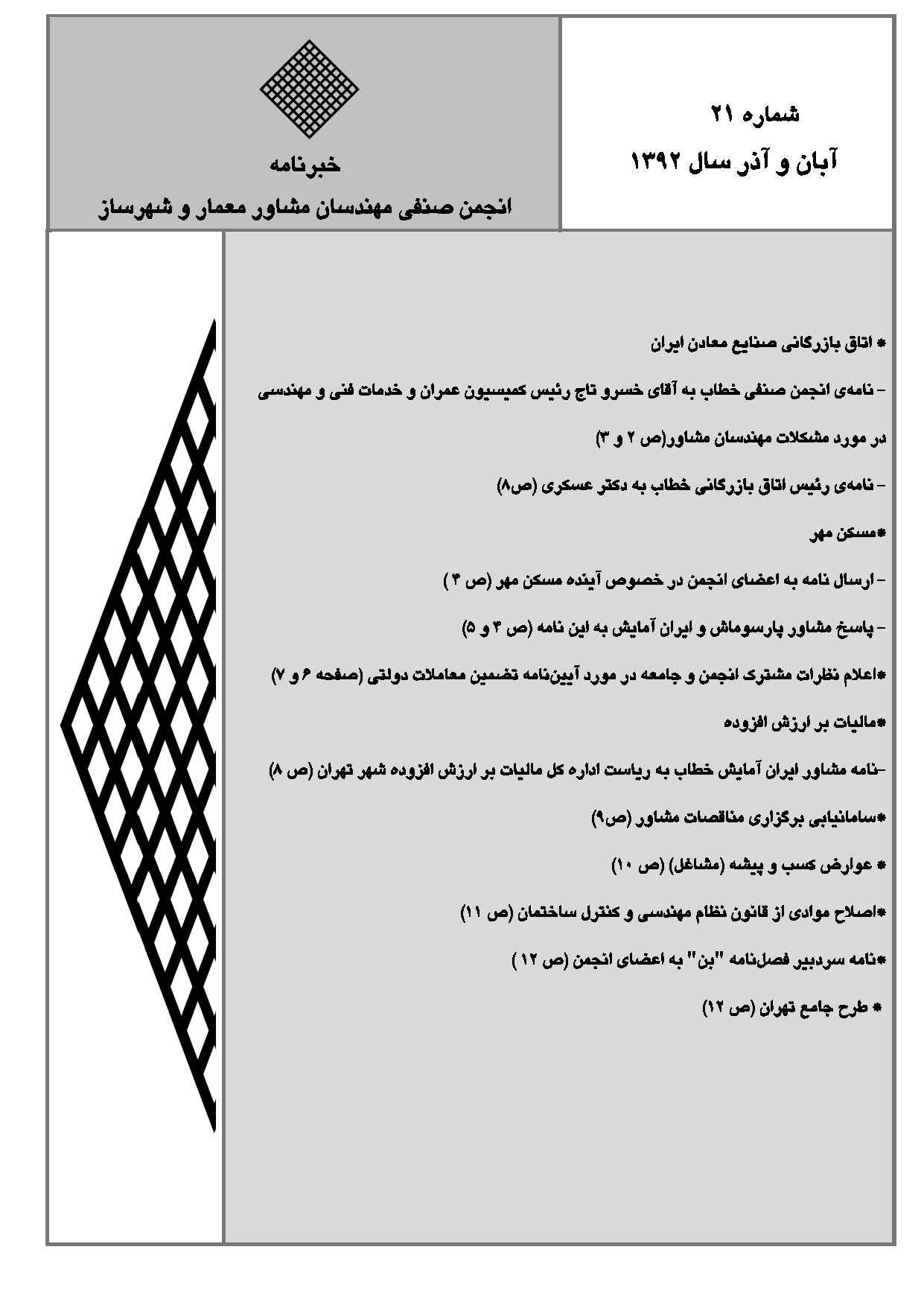 خبرنامه اولین شماره خبر نامه در شهریور 1389بصورت کاغذی و از شهریور ماه 1394 بمنظور صرفه جوئی در هزینه ها و سهولت و سرعت دسترسی اعضای انجمن به اطلاعات بطورت اینترنتی منتشر میشود. خبر نامه اخبار، رویدادها ی حرفه همچون آئین نامه ها ، قوانین و بخشنامه ها همچنین تصمیمات و مکاتبات هیات مدیره با نهادها ،سازمانها و اعضا را به اطلاع همکاران میرساند.